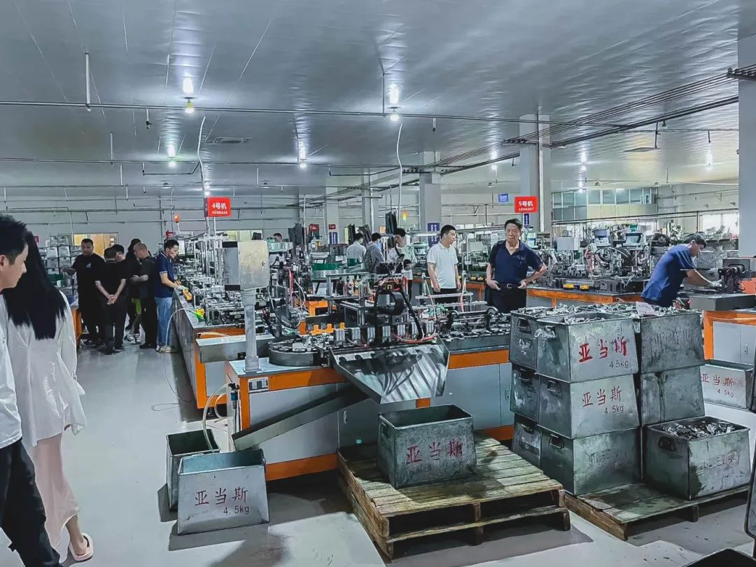 在亞當斯同事的引領下,代理商們走進了工廠的生產現場,親身感受了亞當斯自動化生產的流程。