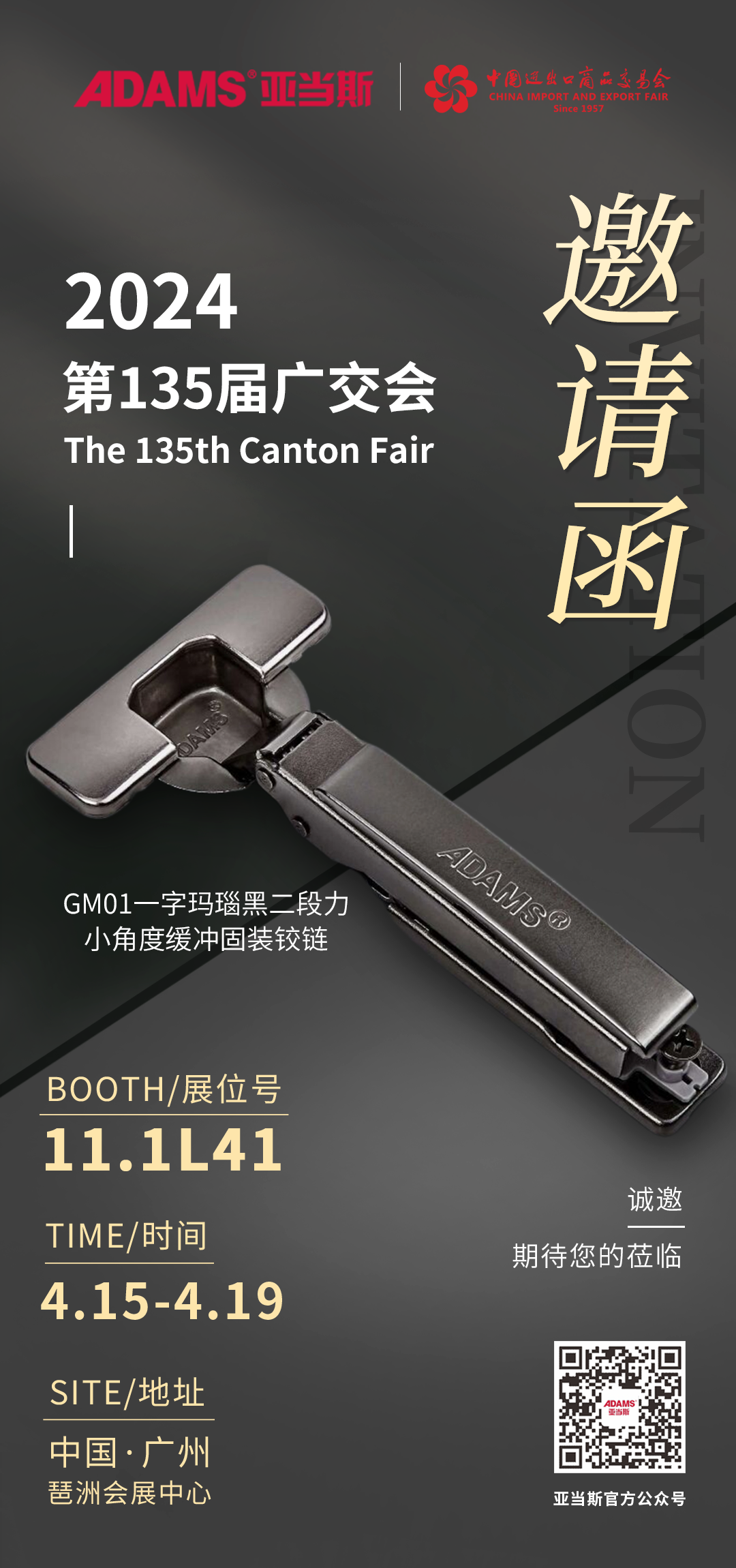2024年3月27日至30日,為期四天的第13屆中國(廣州)家居定制展覽會盛大舉行。亞當斯五金品牌作為行業翹楚,攜多款創新五金產品驚艷亮相,成為展會上一道亮麗的風景線。