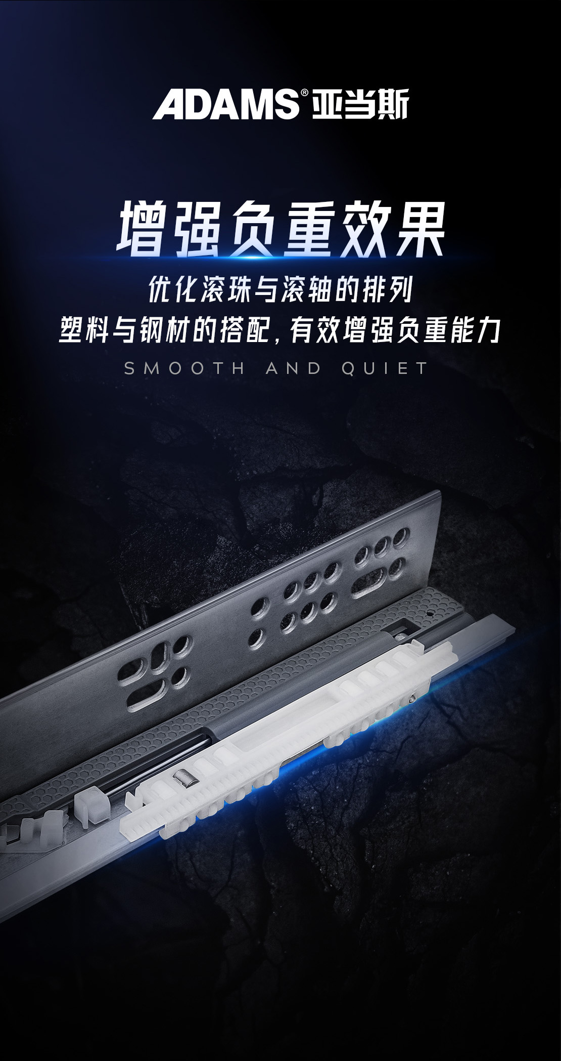 優化滾珠與滾軸的排列,加長滾軸的長度,增加滾珠與滾軸的數量,塑料與鋼材的搭配,有效增強負重能力。