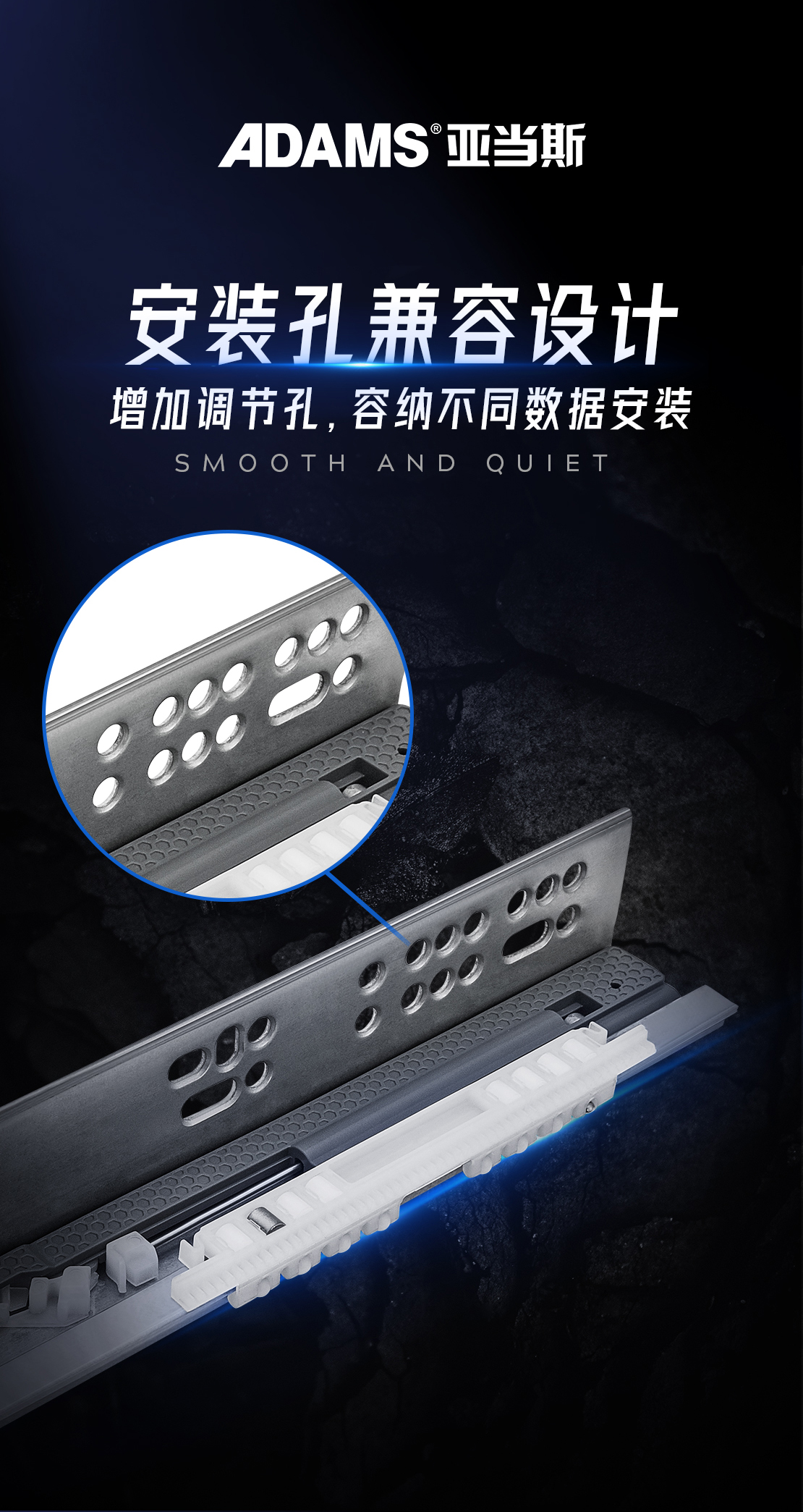 固定軌安裝孔科學設計,兼顧市場所有安裝參數。增加橫豎長型調節孔,容納安裝時出錯。
