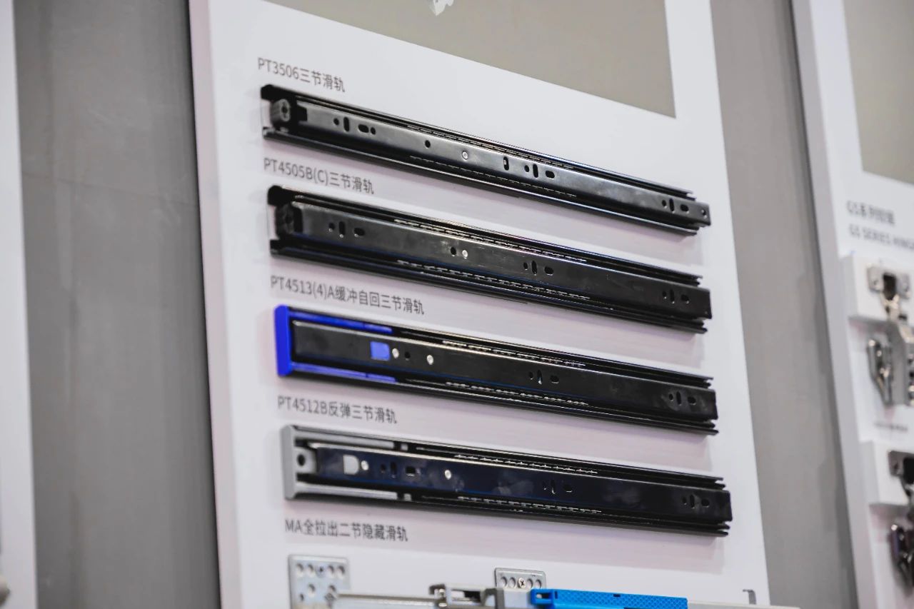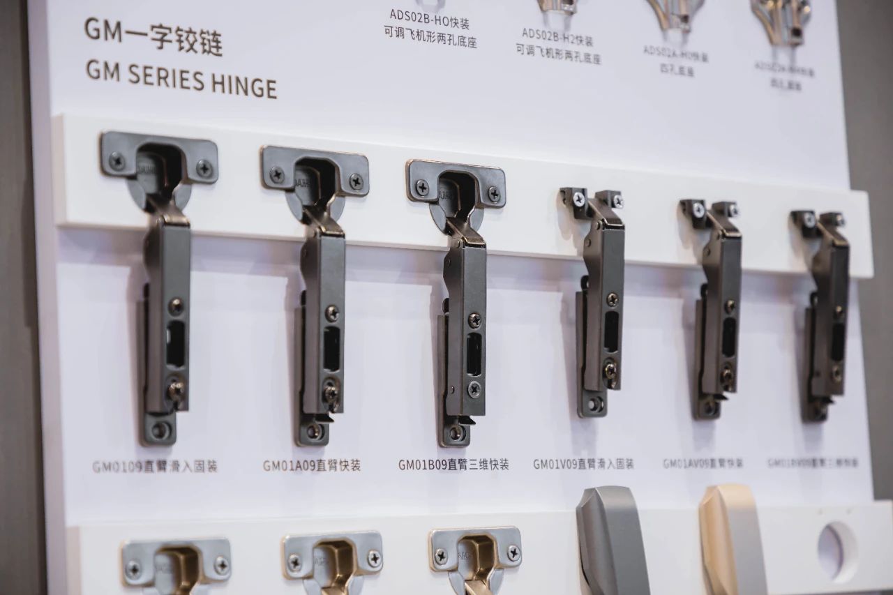 亞當斯的展位上陳列了各式各樣的鉸鏈、滑軌等明星產品,其中GM一字鉸鏈、GS18A鉸鏈、MD03三節隱藏滑軌等產品吸引眾多的觀眾咨詢和體驗,成為展位的焦點之一。不少專業觀眾表示:“亞當斯五金產品簡約時尚,性能卓越,能為家居生活添磚加瓦,提升了家居的實用性和美觀度。”