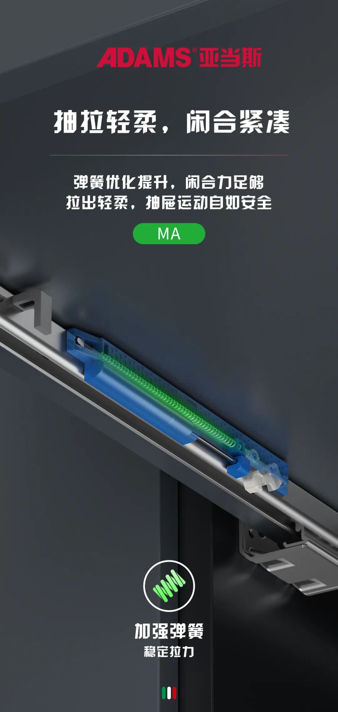 開合彈簧升級,滑軌整體受力均勻,閉合力足夠,帶來高質(zhì)量的抽屜運動體驗。