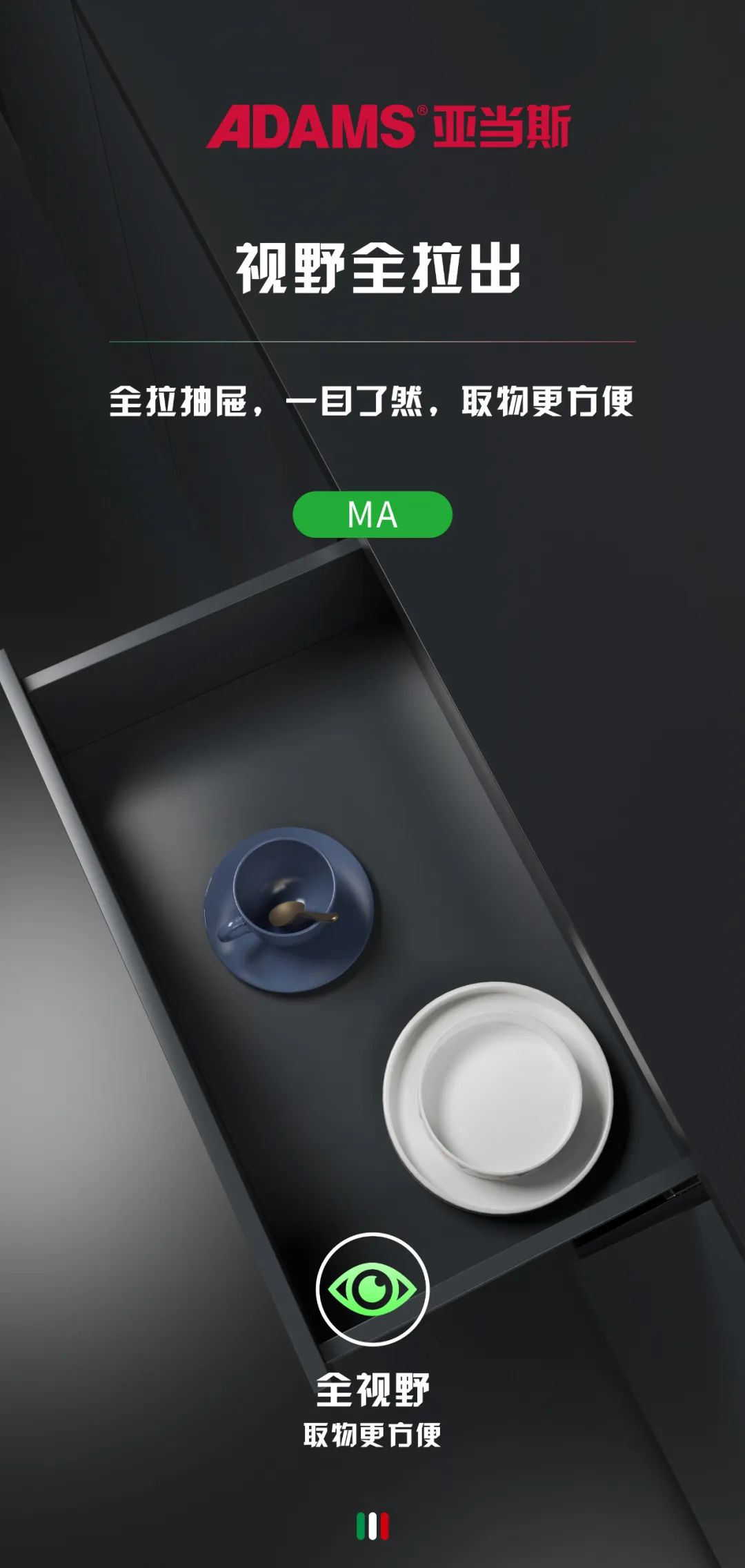 MA系列全拉出二節(jié)隱藏軌,抽屜全拉出,儲存空間更大了
