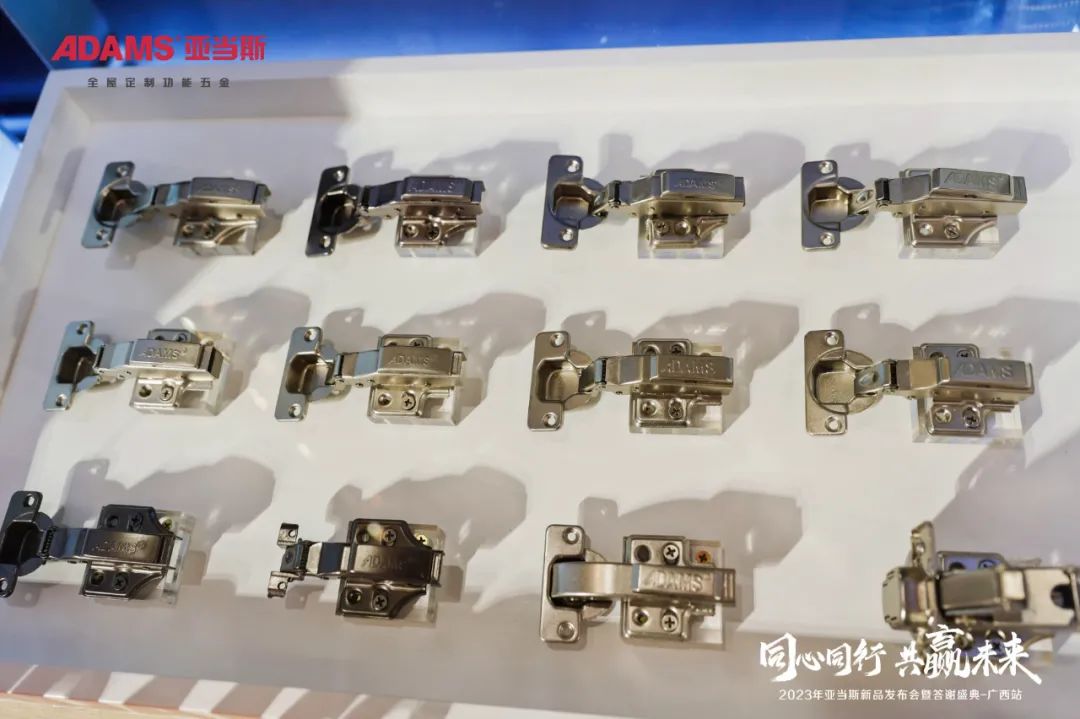 在新品發(fā)布會環(huán)節(jié),亞當斯營銷總監(jiān)廖少文介紹了亞當斯的明星新品:G09T鉸鏈、一字鉸鏈、MK同步隱藏三節(jié)軌和MA系列全拉出兩節(jié)隱藏軌。新產(chǎn)品在性能優(yōu)勢、安裝調(diào)試等多方面得到了全面的提升,為客戶帶來四大體驗:簡易安裝、輕盈靜音、安全耐用、高效調(diào)節(jié)。