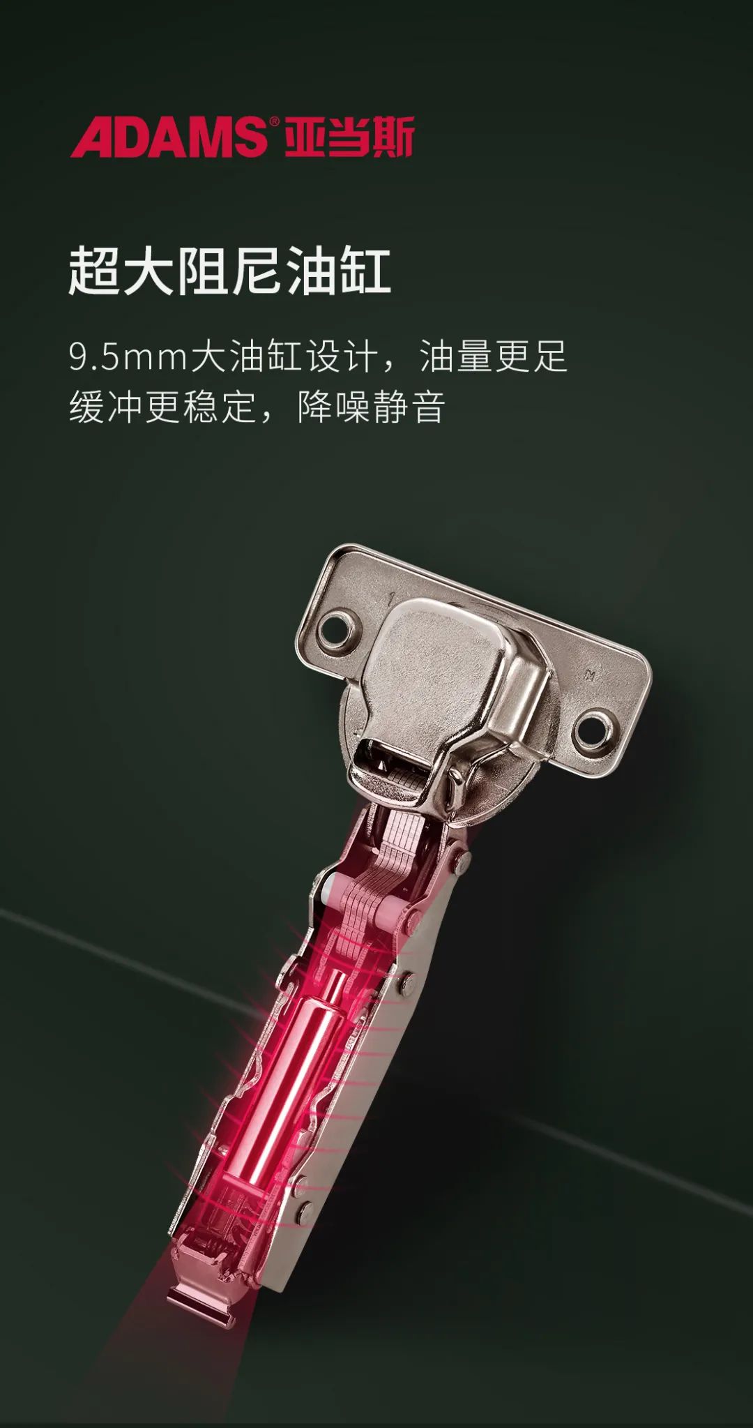 亞當(dāng)斯變幻王采用9.5mm大油缸,在活動(dòng)過(guò)程中更穩(wěn)定,開(kāi)合降噪靜音又順滑。