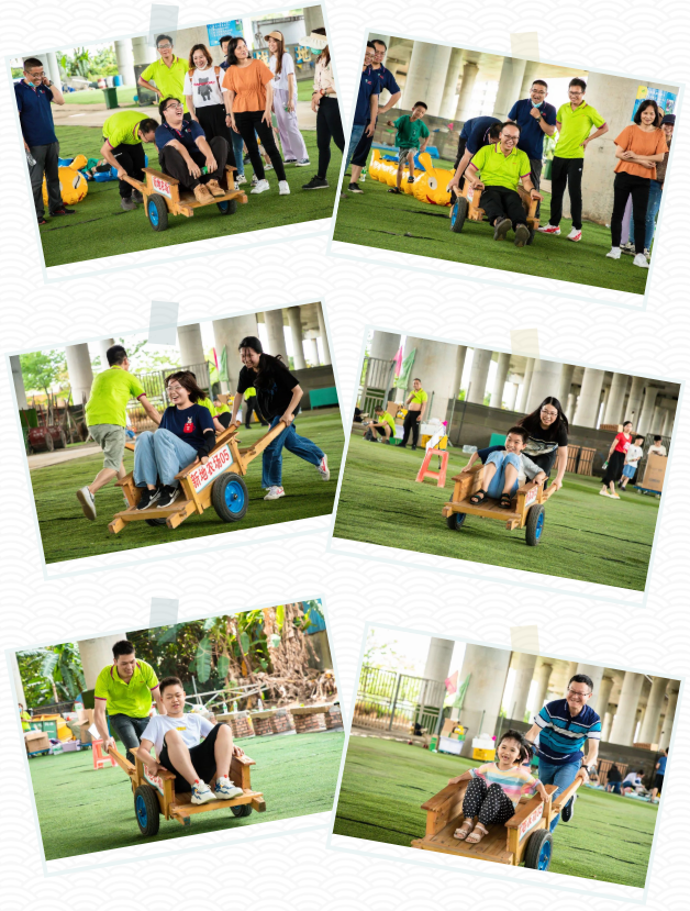 活動正式開始,首先是工作人員帶領家長和寶貝們一起游戲。萌娃和家長臉上洋溢著按捺不住的興奮與喜悅,親子特色活動設置了三項,分別是力架子車運人,毛毛蟲競賽,無敵風火輪,兼具運動性和趣味性。