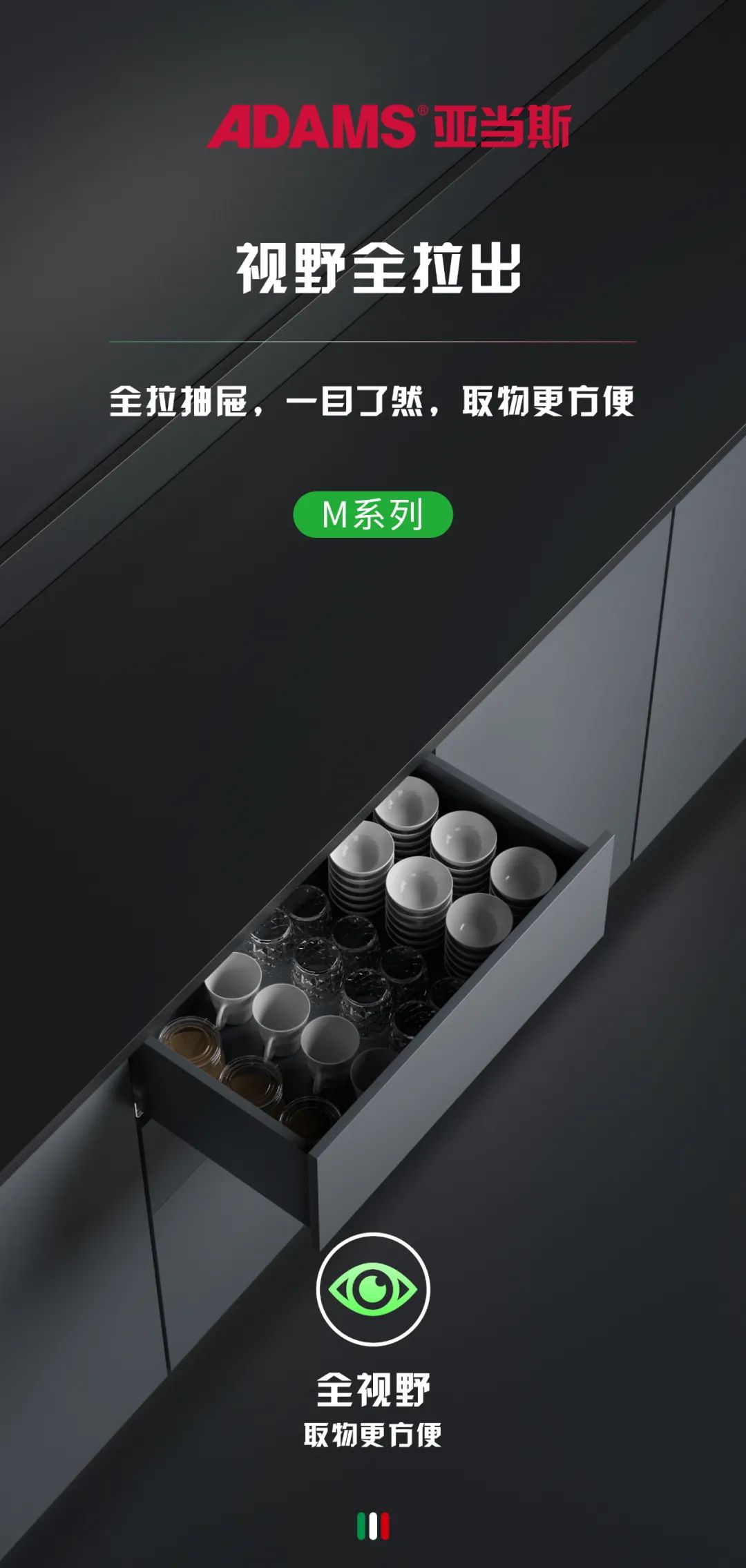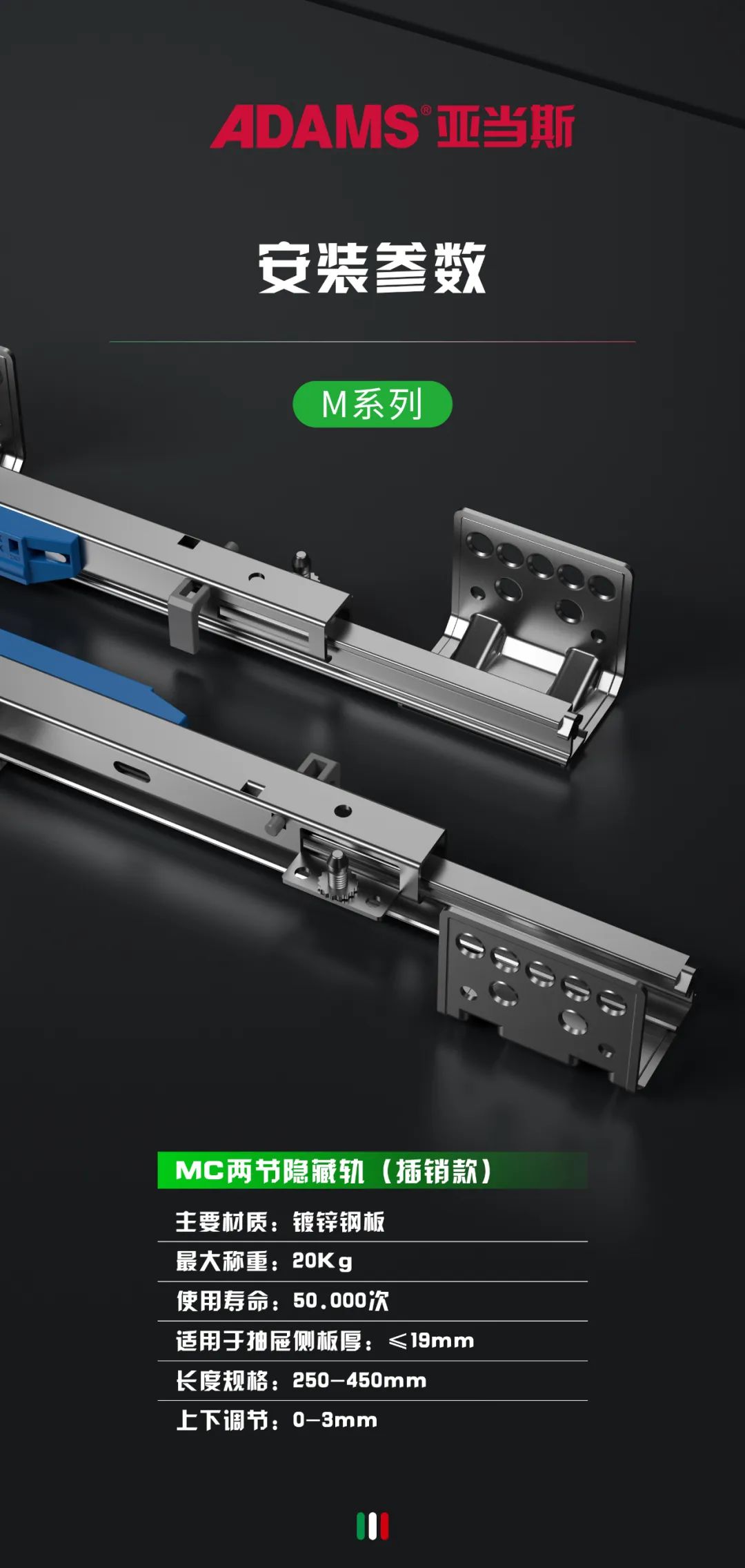 美好生活由此開啟,負重推拉不費力,亞當斯M系列二節隱藏軌能承重達20kg,平穩堅固。