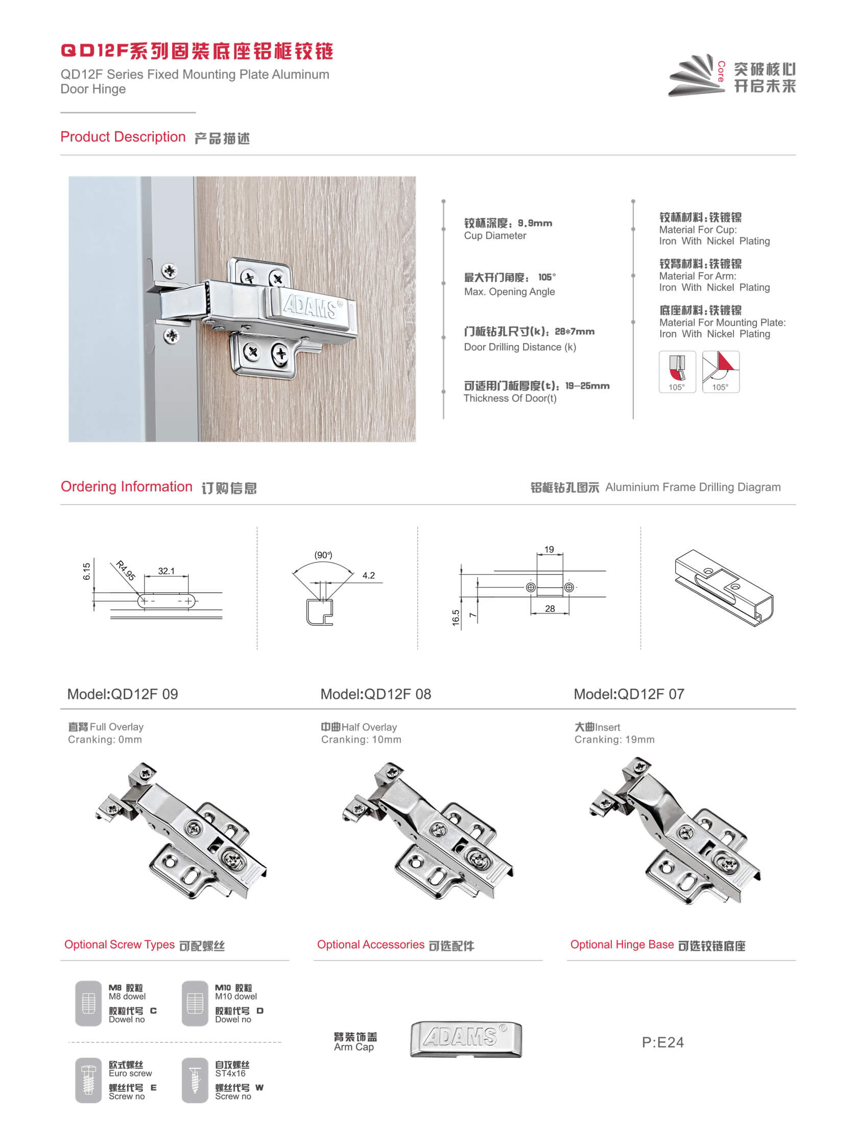QD12F系列固裝底座鋁框鉸鏈
