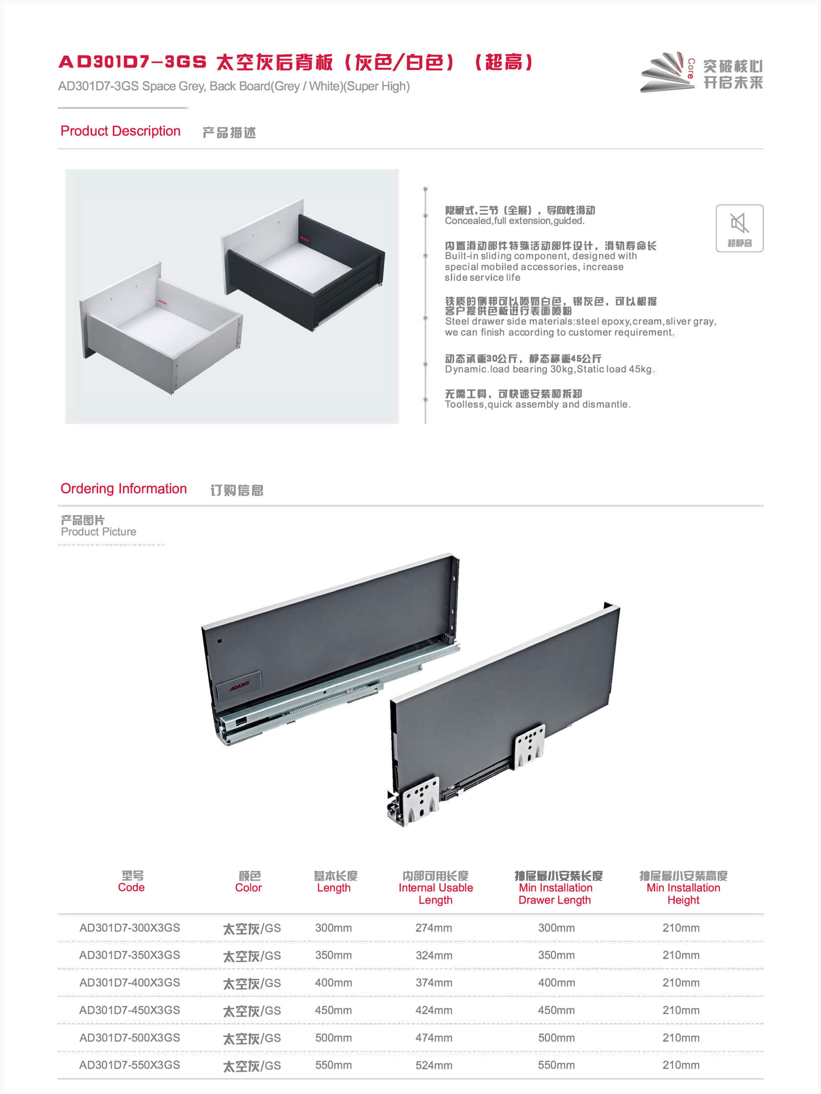 AD301D7-3GS太空回后背板(灰色/白色)(超高)