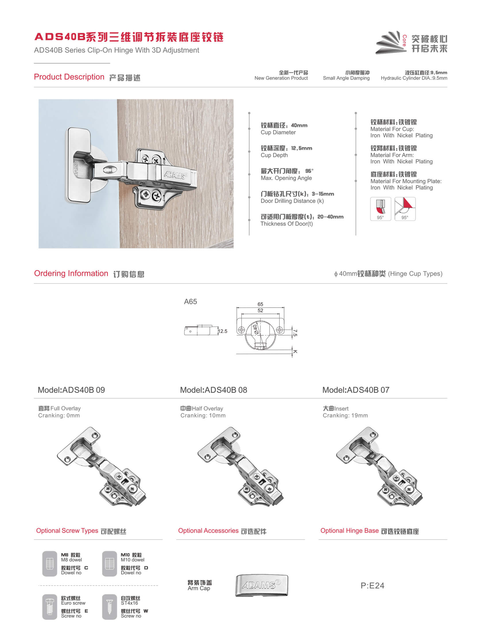 ADS40B系列三維調(diào)節(jié)拆裝底座鉸鏈